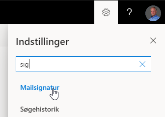 Klik i søgefeltet og skriv »signatur« for at finde signatur-indstillingerne: