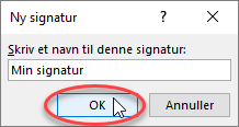 - Giv signaturen et navn og klik på OK.