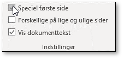 På fanen Sidehoved og sidefod skal du vælge indstillingen Speciel første side.