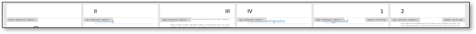 Gå til sidehovedet igen på den side du indsatte sektionsskiftet. (sektionsnummeret kan ses nederst til venstre i Words statusbar, kan det ikke ses, kan du højreklikke og vælge sektion. Dette er ikke vigtigt, men kun for dine øjnes skyld):