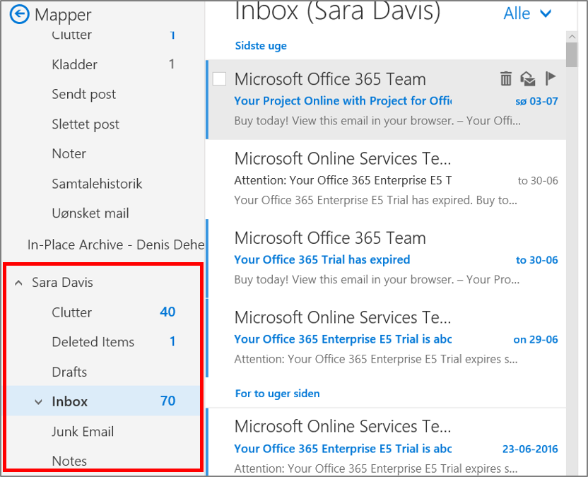En delt postkasse kan være enten en fælles afdelingspostkasse eller en chef/kollega postkasse, som du skal have adgang til.